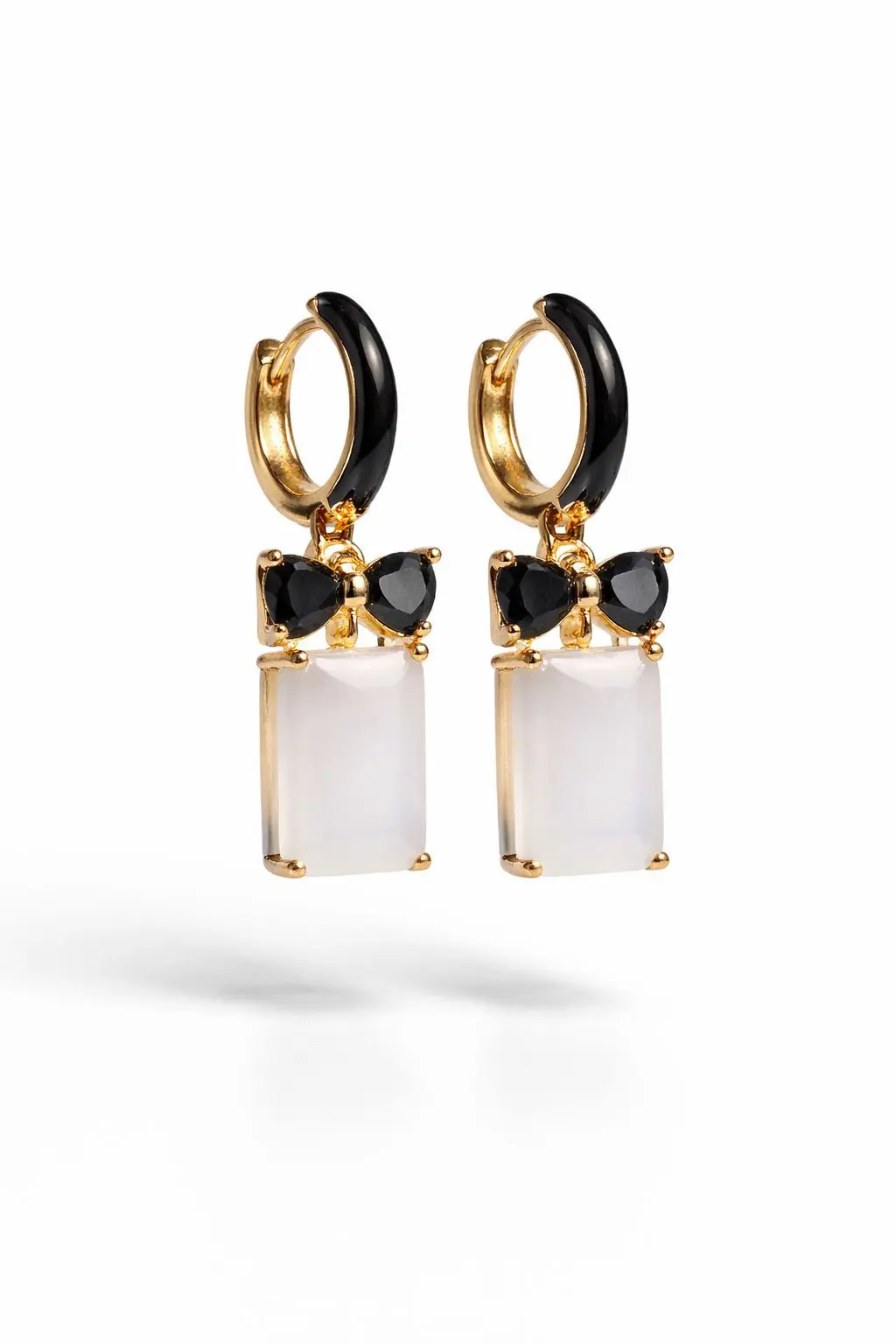 Эти серьги выполнены с изящной эмалевой швензой и дополнены подвесками с сияющими цирконовыми камнями. Минималистичный и элегантный дизайн.